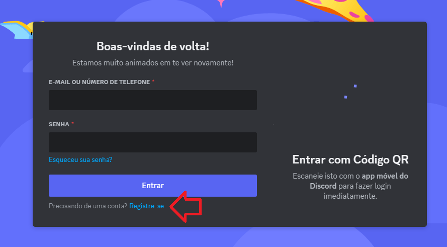 vai aparecer essa tela, você clica em Registre-se (seta vermelha)