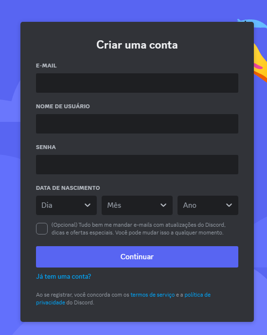 você preenche os dados como manda o site e aperta em Continuar em azul.