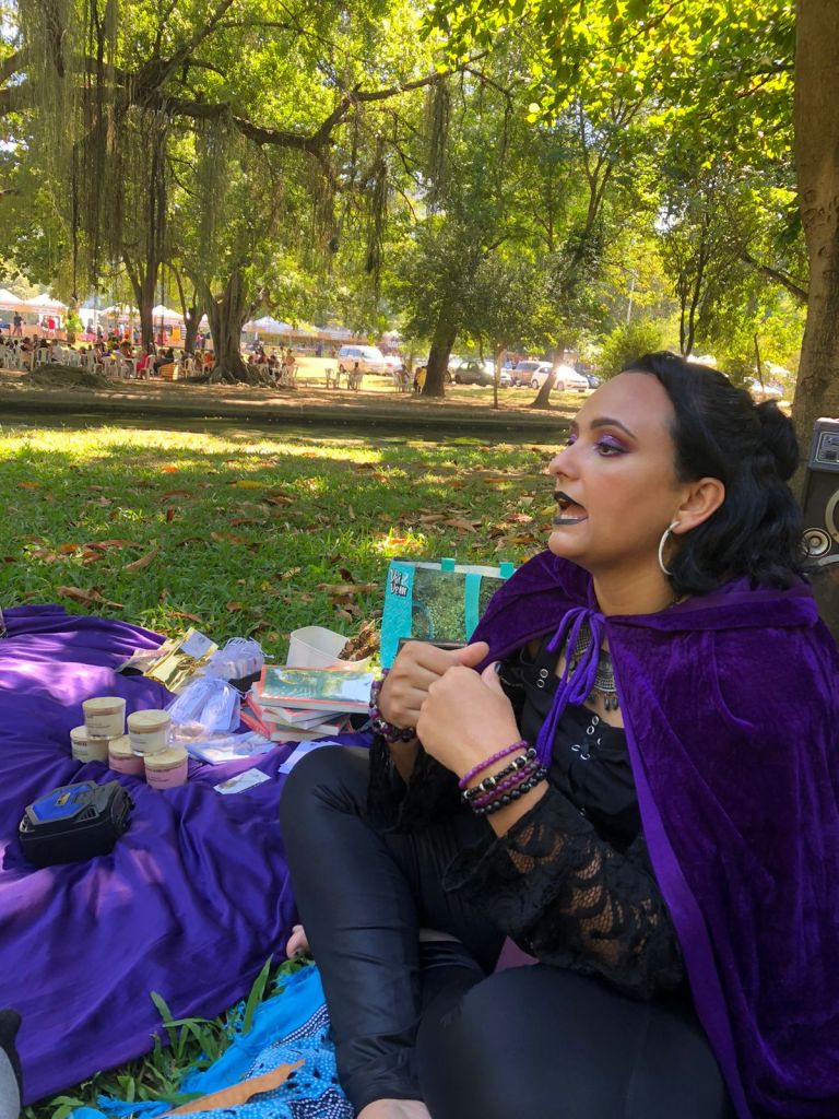 Em seguida, a Alta Sacerdotisa Ânya Evorah, também do Coven Jardim de Hekate cativou a audiência com sua palestra inspiradora sobre “Como Ser uma Bruxa Mesmo Sem Tempo”, oferecendo dicas práticas para integrar a espiritualidade no cotidiano agitado.