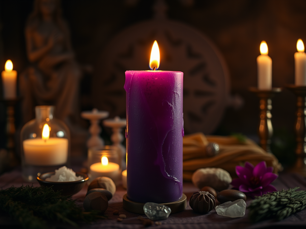 - Ungir velas: Passe o óleo em velas roxas, azuis ou brancas para rituais de meditação, abertura espiritual e conexão mediúnica.